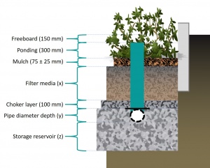 If you are designing a planted system which does not infiltrate water, see advice on Planters: Sizing.